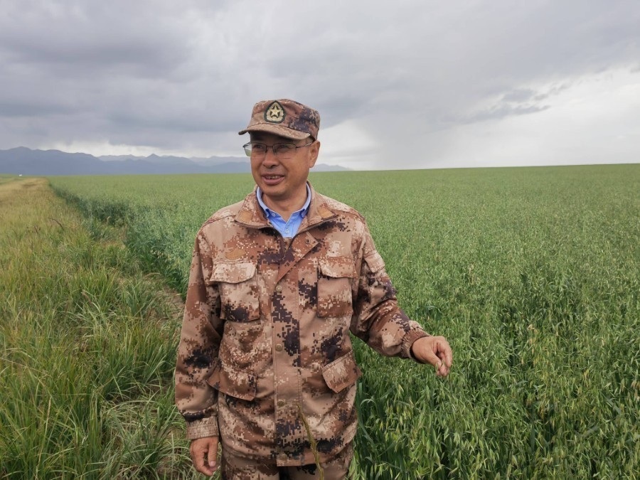 燕麦草种植大户罗琪在自己家的燕麦田里