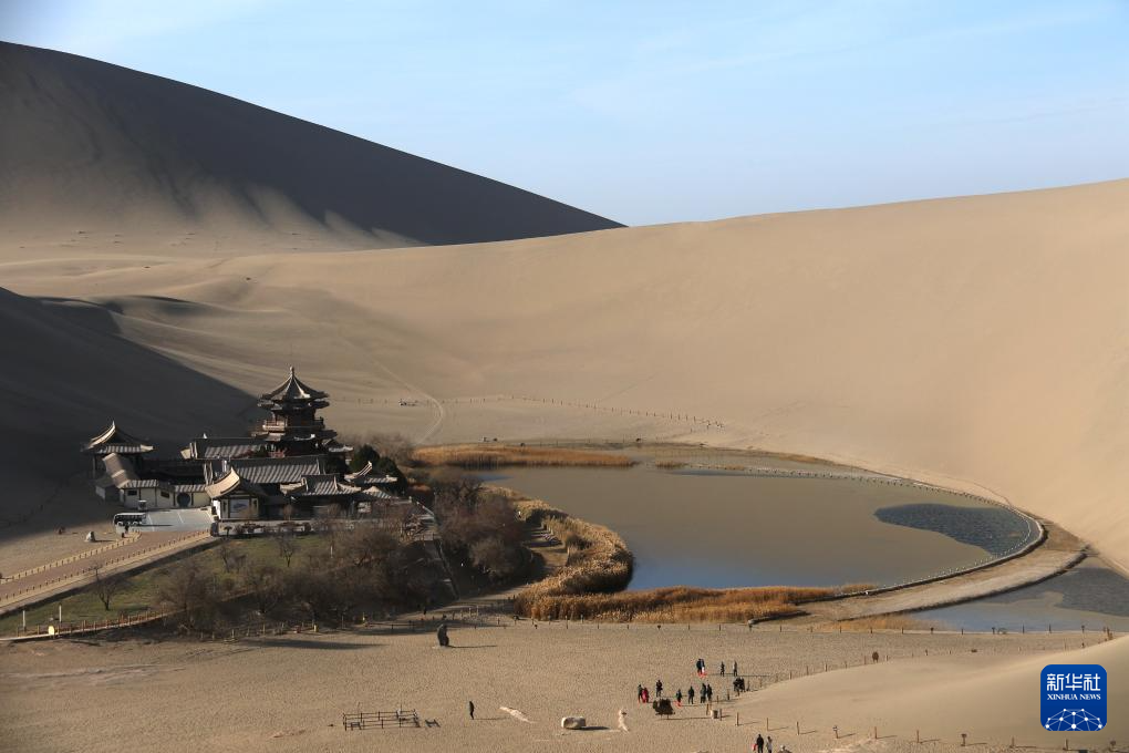 12月1日,游客在甘肃省敦煌市鸣沙山月牙泉景区游览。新华社发(张晓亮 摄)