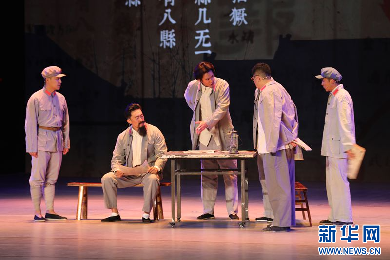 图为演员在庆阳大剧院表演话剧《哈达铺的灯光》。新华网(王生元 摄)