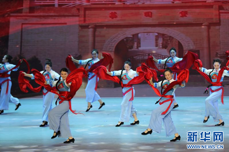 图为演员在庆阳大剧院表演大型民族歌舞剧《苏维埃政府成立》片段。新华网(王生元 摄)