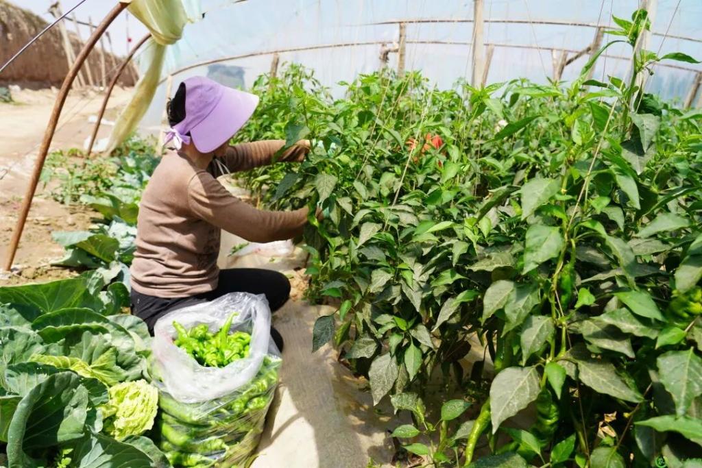 三合村村民正在采摘辣椒。新华社发(靖远县融媒体中心供图)