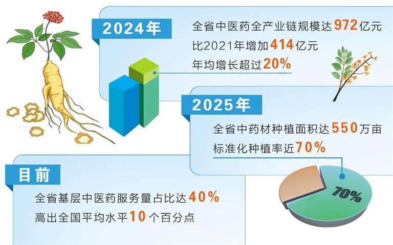 一组组数字,成为甘肃中医药产业发展的有力见证:2024年甘肃省中医药全产业链规模达972亿元,比2021年增加414亿元、年均增长超过20%,呈现强劲发展势头。2025年上半年甘肃省中医药全产业链规模达393.22亿元、同比增长18.44%,全年将突破千亿元大关。