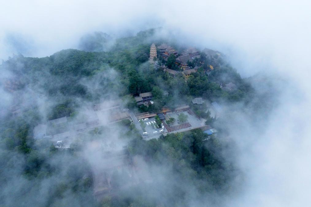 这是2025年7月11日拍摄的平凉市崆峒山雨后云海美景(无人机照片)。新华社发(吴希会摄)